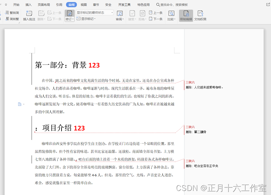 我们会发现已经对文档内容进行了修订与审阅,如图3-13所示。